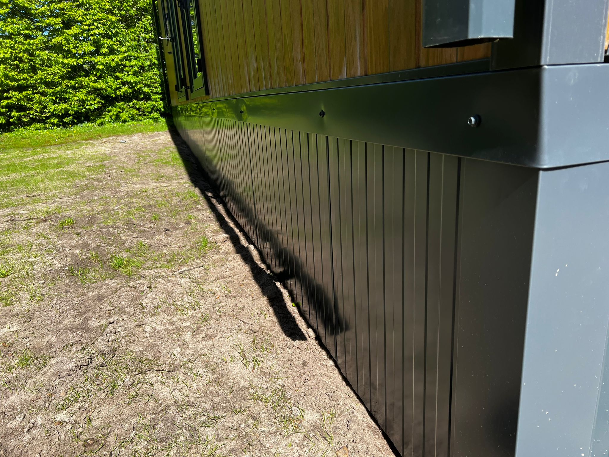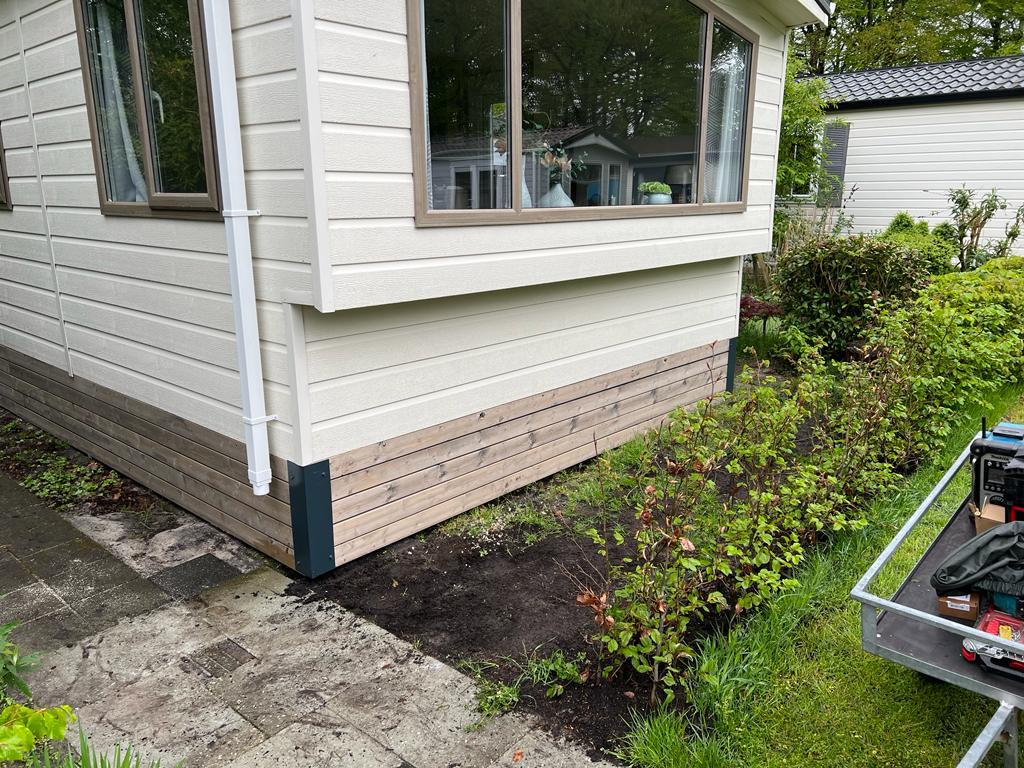 Houten onderafzetting zorgt voor een natuurlijke en stijlvolle afwerking van uw chalet en beschermt de onderzijde tegen weersinvloeden en vuil. Het werkt de ruimte onder het chalet netjes af en draagt bij aan een verzorgde uitstraling.